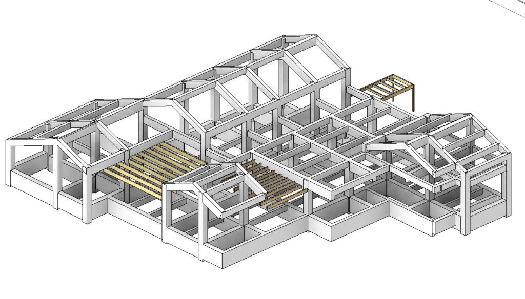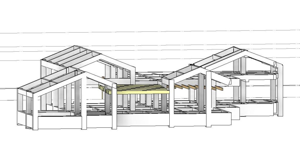 実際に建物の構造フレームのみを表示した立体モデルですが、