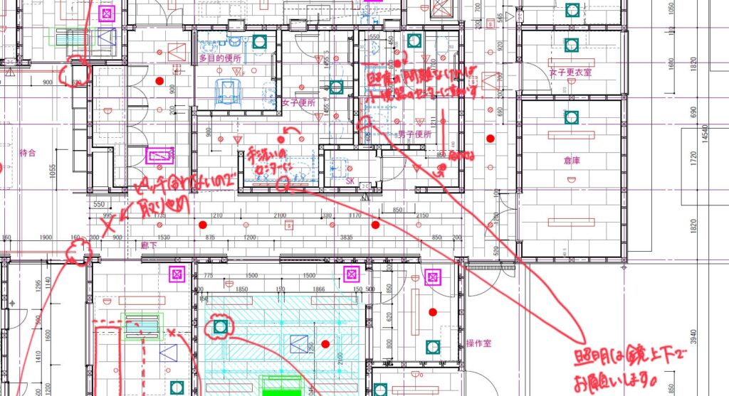 照明の施工図の確認をしています。