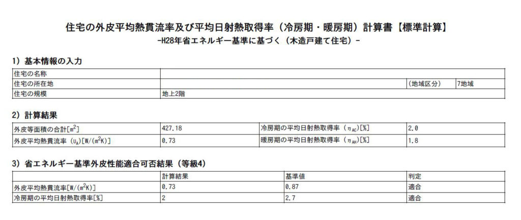 3)の省エネ外皮性能適合可否結果が、適合になっていることが分かります。