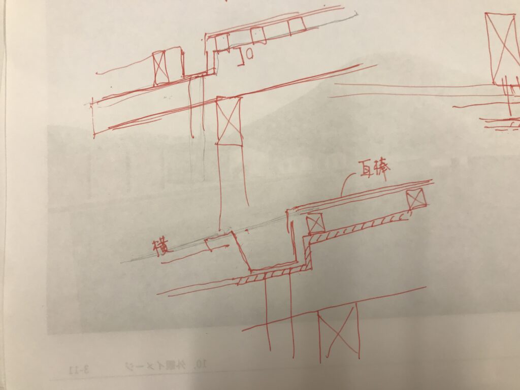 ささっと屋根関連の打合せをした際に書いたスケッチです。