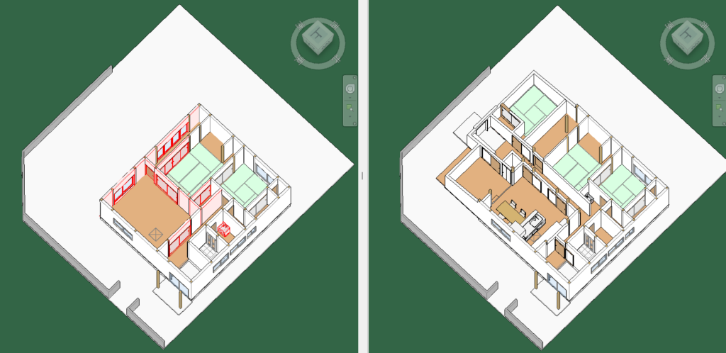 こうすることでどの壁を取っ払ったらいいのか、新しい間仕切りはどう設けたらいいのかなど、
