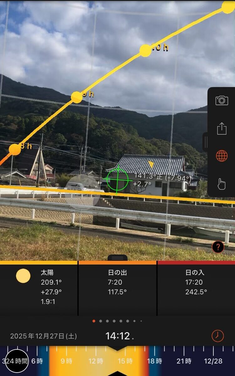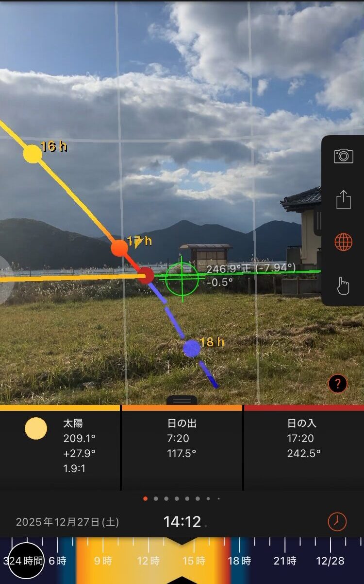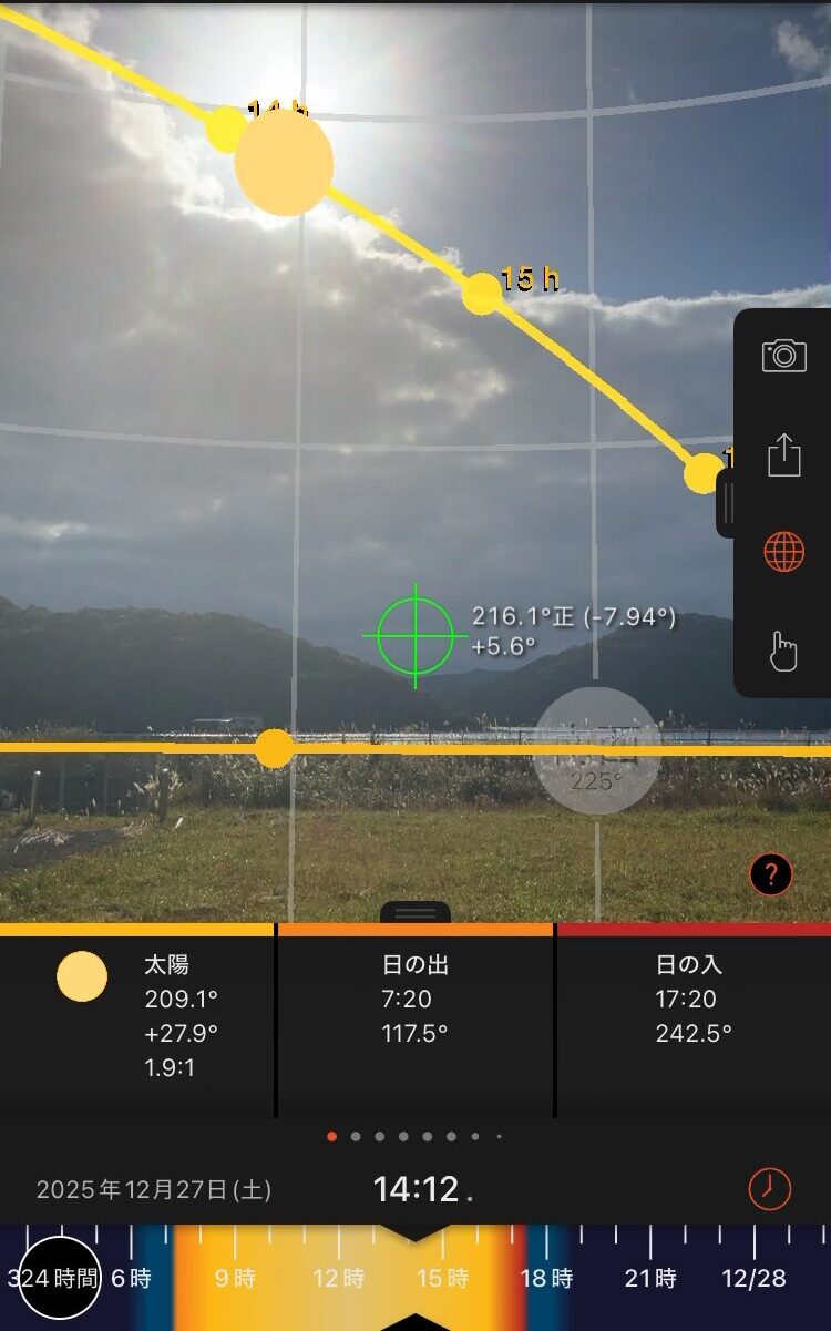 iPhoneのアプリでもある軌跡を確認すると、今の太陽の位置と時間とがしっかりと合うのも確認。