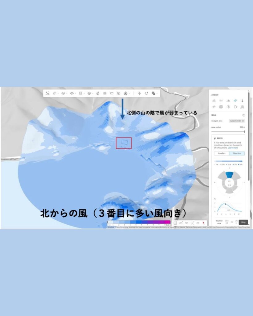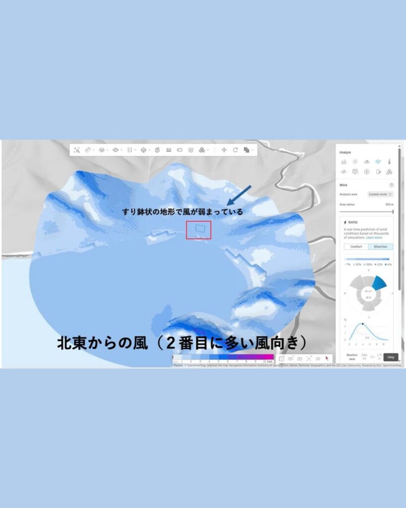 強烈な台風が南側から吹き込み、東西に山がある地形では、その風が一気に抜けてしまう。