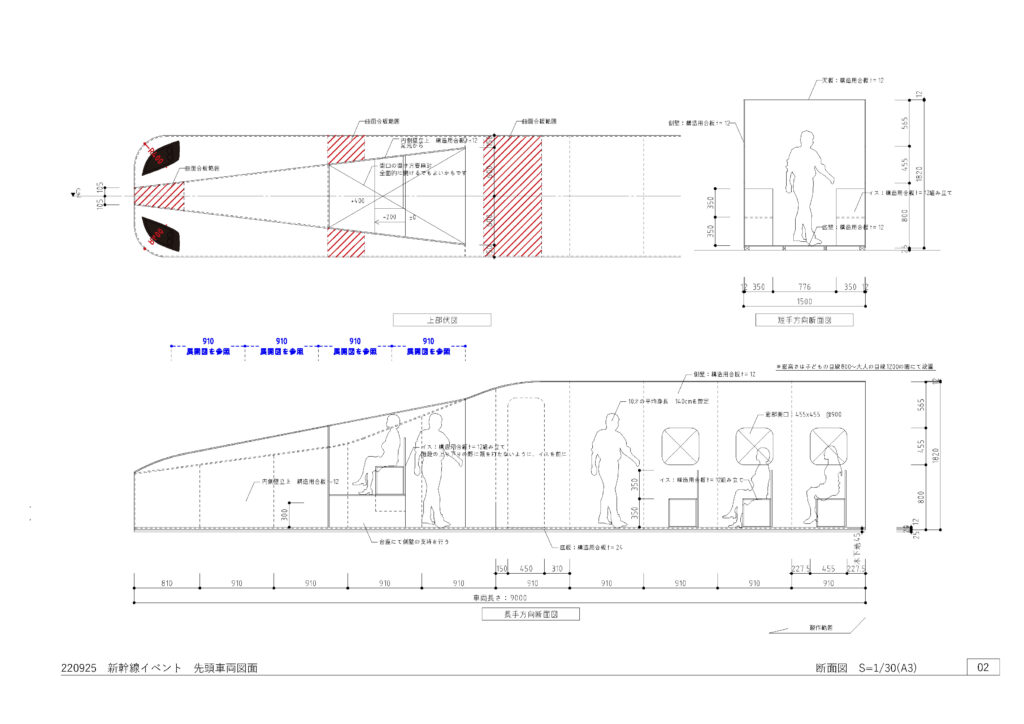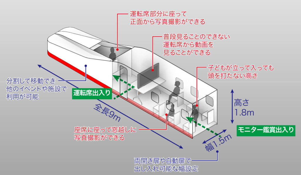 ミニ新幹線は、幅1.5m×高さ1.8m×長さ9mで、