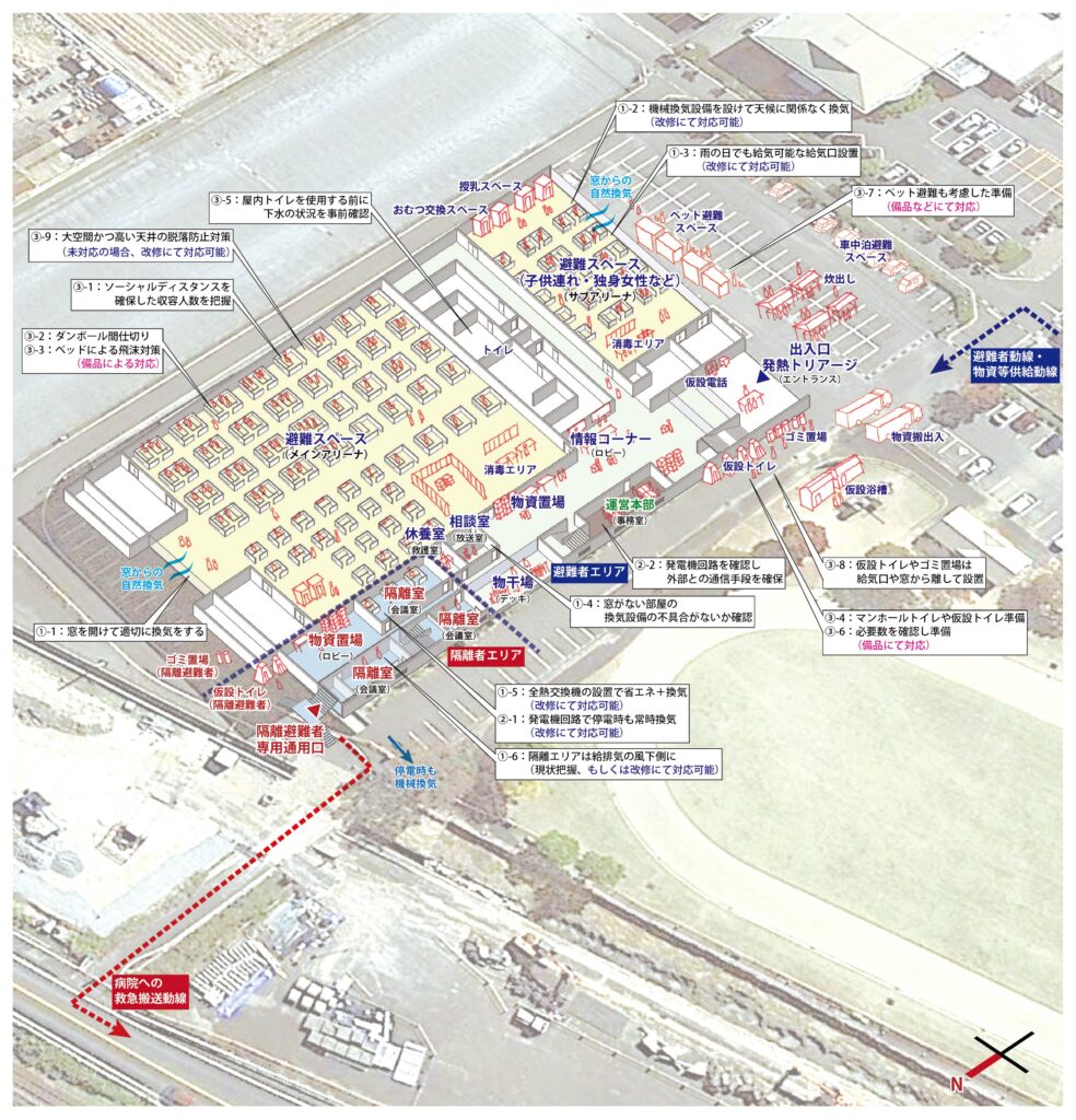 あくまで、既存の建物を避難所として整備するには?という視点で、考えているものですので、